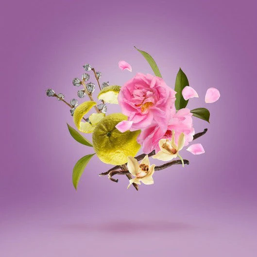 In het hart bloeit een rijke Bulgaarse roos, gecombineerd met viooltjes bladeren en een vleug eucalyptus, wat diepte en karakter geeft.